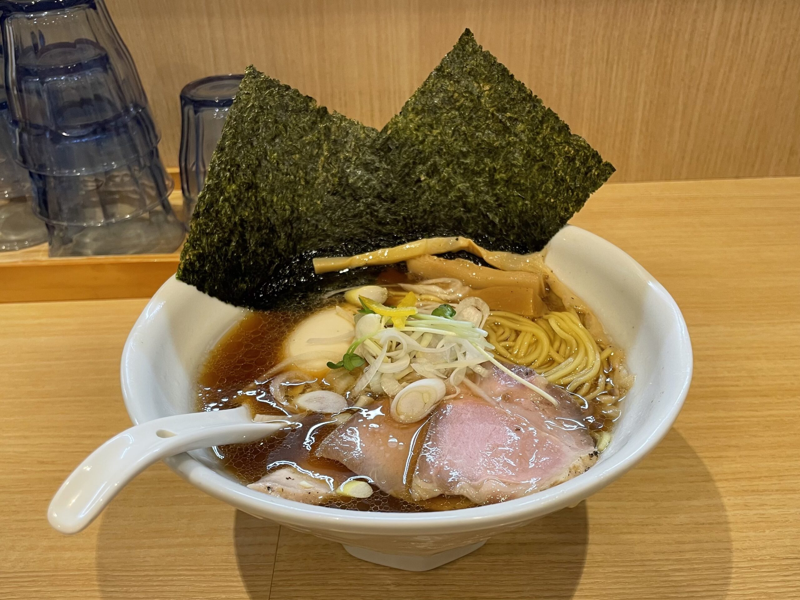 声がけしながらも店主は作業の手を休めません。なんなら客席に背を向けて麺をゆでている時もあります。それなのに声がけが的確なタイミングでした。しかも聞き取りやすいしっかりとした発声です。